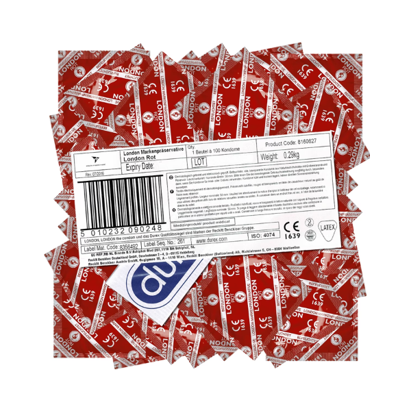 The London brand from Durex is the gold standard in condoms. The London condoms red are strawberry flavored, moisturized and transparent, made of natural rubber and equipped with a reservoir. These condoms are suitable for a medium to large penis. London condoms are dermatologically tested and electronically tested, individually shrink-wrapped and loosely packed in a bag.