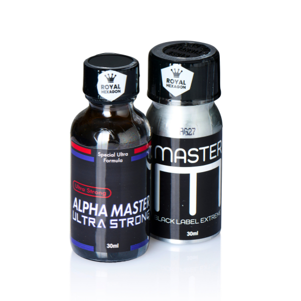 The Master Poppers Combo consists of two poppers bottles: 1x ALPHA MASTER ULTRA STRONG Poppers 30ml and 1x MASTER Black Label Extreme 30ml Poppers. The ALPHA MASTER ULTRA STRONG Poppers 30ml is for all dominant masters who are looking for that extra kick for themselves and their slaves during domination and BDSM.