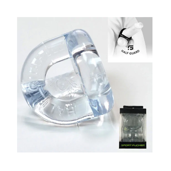 This Sex Toy Sport Fucker Half Guard clear works as a cockring and testicle divider! Made of super strong, highly flexible and extremely stretchy TPR rubber, cock toy in transparent from Sport Fucker!
