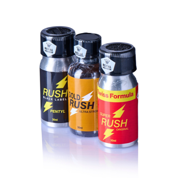 Rush Black Label Pentyl Poppers and Super Rush Poppers set new standards for intense, long-lasting moments with strength 5, while Gold Rush Ultra Strong Poppers deliver particularly long-lasting and intense effects with its powerful hexyl nitrite formula. Together, the three variants offer the perfect combination of power, quality and endurance – ideal for all those who are looking for something special and want to make their adventures even more exciting.