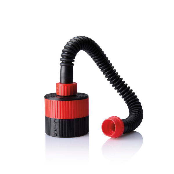 The stylish XTRM MAXX filter for gas masks in red and black is available in two different sizes. You can either just use the filter with the black container (standard version) or you can add the red intermediate piece and thus have a filter twice the size (double version). Depending on what you put in the filter, you decide whether to use the standard or double version. The filter thread is internal and the threaded connection for the mask or hose fits all threads according to DIN EN 148-1. You can also find the matching hoses, T-piece and rubber mask in our store. Simply insert socks, leftover rubber, leather or soaked absorbent cotton and you’re ready to go. Material: ABS, red and black