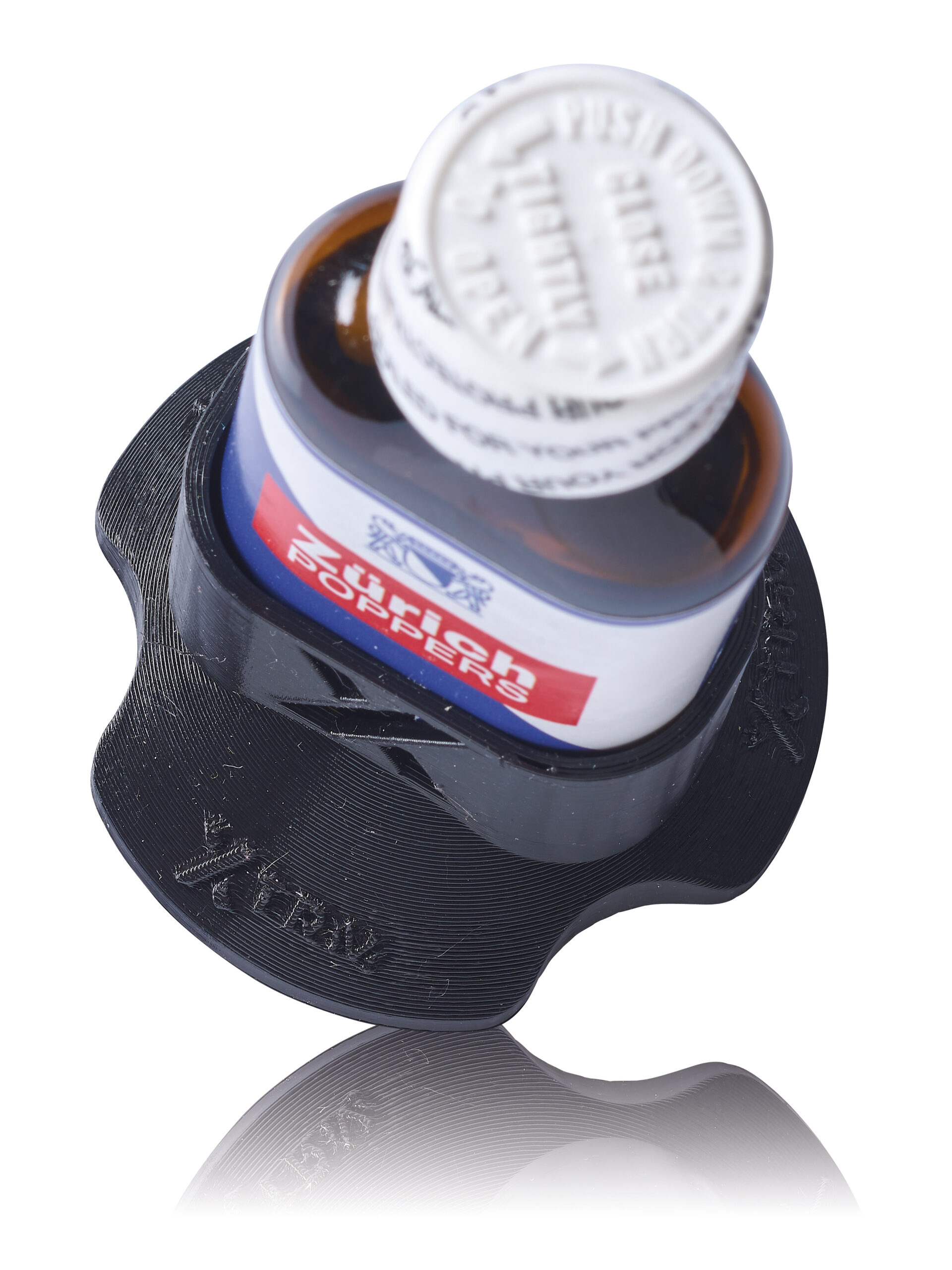 With the raised XTRM X-Stopper, you never have to worry about your poppers bottles tipping over or even spilling during storage. You simply place the poppers bottle in the X-Stopper before storing it in your cupboard or drawer. You can be sure that the bottles will no longer fall over. The XTRM X-Stopper is available in 5 different colors and for all 4 bottle shapes.