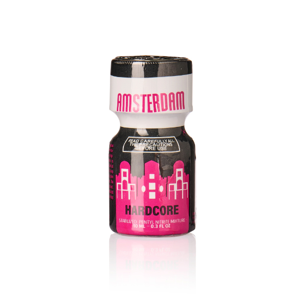 Amsterdam Hardcore Poppers 10ml garantit une expérience hardcore. Le nouveau et puissant N-pentanol procure un coup de boost instantané et un effet extra-longue durée. Prépare-toi à l’ultime rush de poppers et laisse tomber tes inhibitions pour faire monter ton plaisir à l’infini. Amsterdam Hardcore Poppers est disponible en 10ml et 24ml. Procure-toi Amsterdam Hardcore dès maintenant et fais l’expérience du frisson ultime.