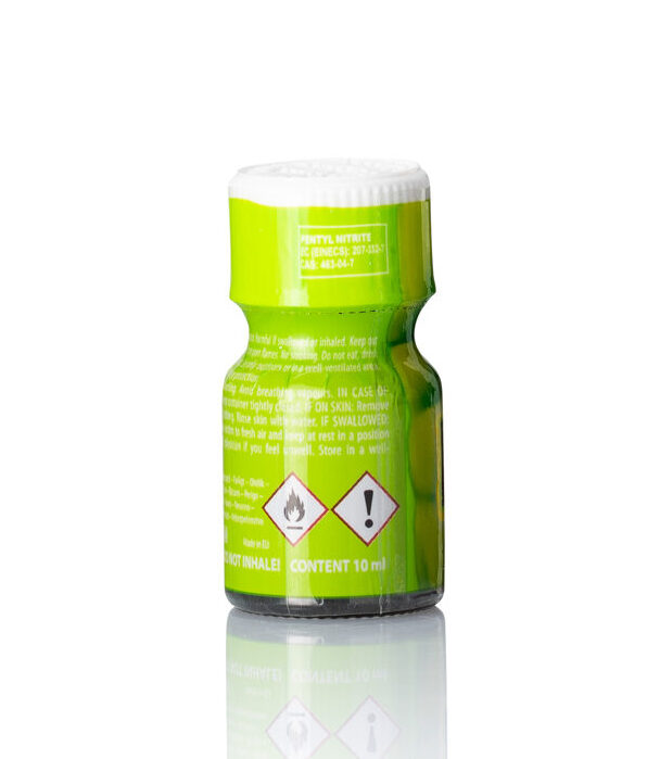 Le poppers Hulk Ultra Strong 10ml est basé sur le pentylnitrite original. Hulk Extra Strong n’est pas seulement un excellent complément lors de rapports sexuels, mais procure également un coup de fouet supplémentaire lors d’une fête, d’un club, d’un concert ou d’un festival. Découvre comment les couleurs se réchauffent l’espace d’un instant et comment la musique te transperce pendant un moment. Avec le Hulk Ultra Strong Poppers vert, tu vas certainement créer la surprise auprès de tes amis. Si tu ne sais pas comment sniffer les poppers, lis attentivement notre section FAQ sur ce site. Ne pas boire les poppers !