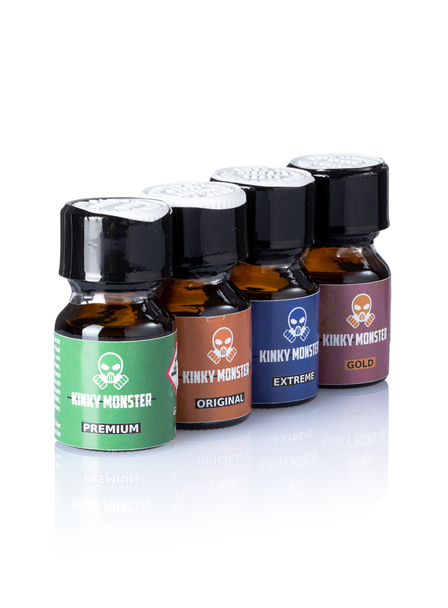 Kinky Monster Wild Collection s’adresse à tous les kinksters et est synonyme de poppers encore plus fort et encore plus durable. La Wild Collection contient un flacon de Kinky Monster Premium Poppers 10ml, de Kinky Monster Original Poppers 10ml, de Kinky Monster Extreme Poppers 10ml et de Kinky Monster Gold Poppers 10ml. De plus, les flacons de Kinky Monster Poppers contiennent du nitrite de pentyle particulièrement pur et hautement concentré. Les poppers Kinky Monster existent en 8 variétés différentes. En savoir plus sur Kinky Monster sur www.kinky-monster.com.