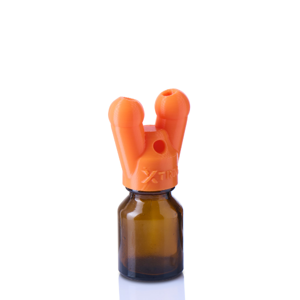 Le Poppers Booster Cap XTRM SNFFR Double Small Orange de XTRM convient à toutes les bouteilles rondes de 10ml et 30ml des fabricants Lockerroom, Shelbora et Royal Hexagon. La couleur orange du sniffer fait partie des préférences de la communauté du cruising.