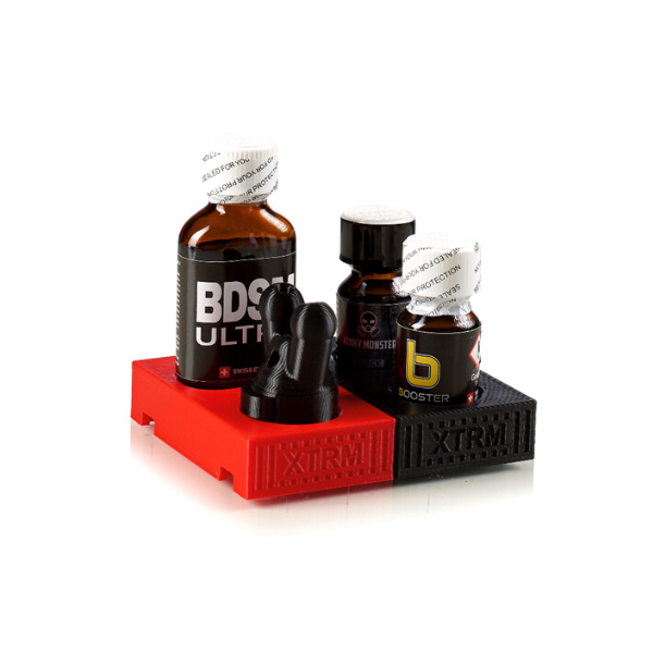 Le dépôt révolutionnaire pour poppers résout un problème bien connu : les flacons traînent jusqu’à la prochaine utilisation, sont rangées dans un tiroir ou dans une armoire fétiche. Avec le dépôt de stockage de poppers, les flacons sont garanties de rester debout et de ne pas tomber pendant le stockage. De plus, ce produit pratique pour le rangement donne aux poppers une place fixe et sûre dans ton tiroir, sur ton bureau, dans ton armoire fétiche ou sur ta table de nuit. Crée de l’ordre et donne à tes flacons une place sûre et fixe.