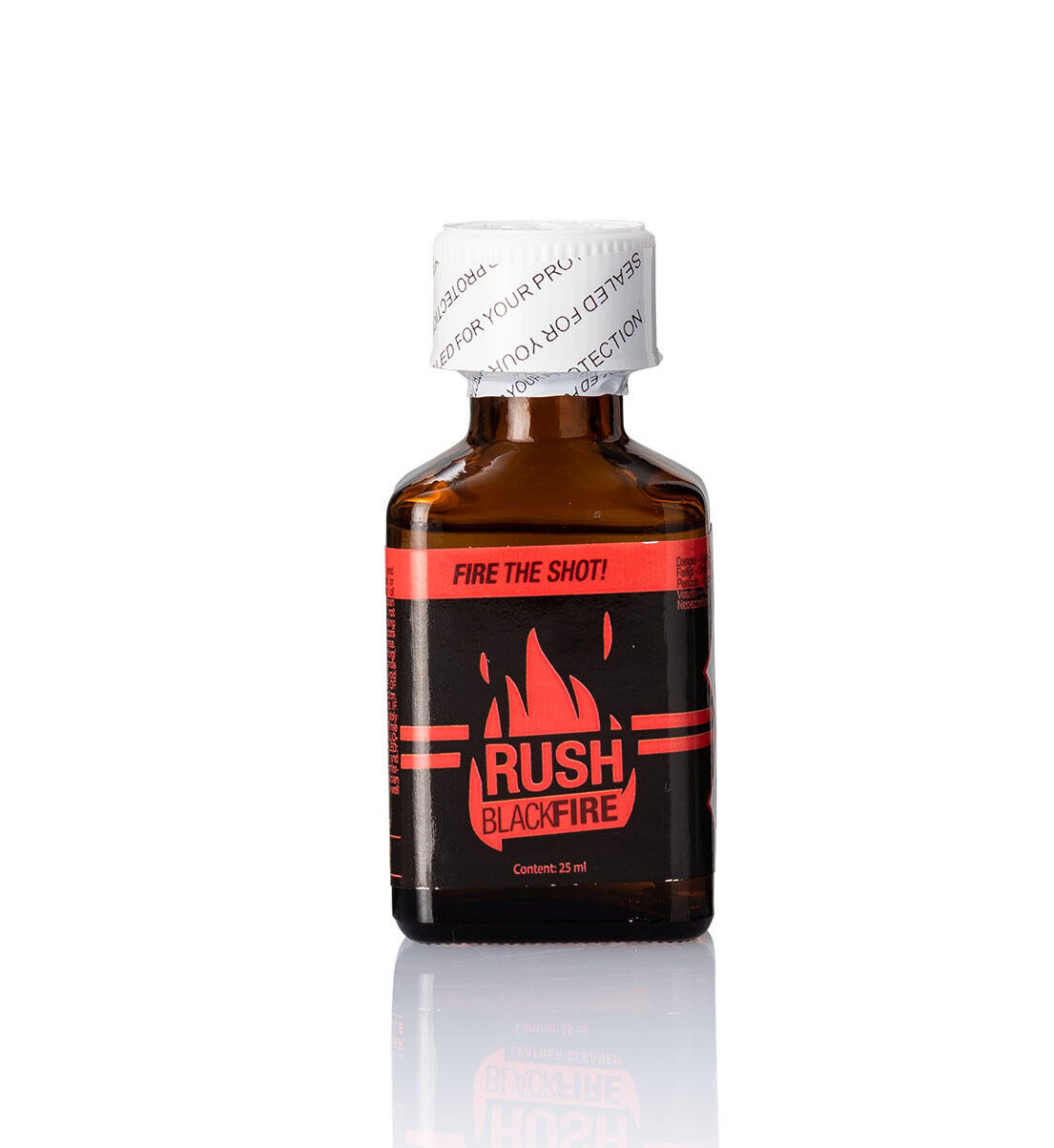 Le Rush Black Fire Poppers 25ml est basé sur le pentylnitrite original. La flacon carrée de 25 ml garantit que ce Rush contient encore l’ancienne formule Rush très appréciée. Réveille le feu en toi avec ce poppers original et quand le moment sera venu, la devise de ce poppers sera « Fire the Shot ». Le Rush Black Fire 25ml contient en outre une petite bille dans la flacon. Cela permet au poppers de rester frais plus longtemps après l’ouverture. La bille absorbe les molécules d’eau et d’oxygène et les lie. Les poppers préfèrent l’air sec à l’air ambiant humide. Une bille désintégrée n’est donc pas mauvaise, elle montre au contraire qu’elle a rempli sa fonction.