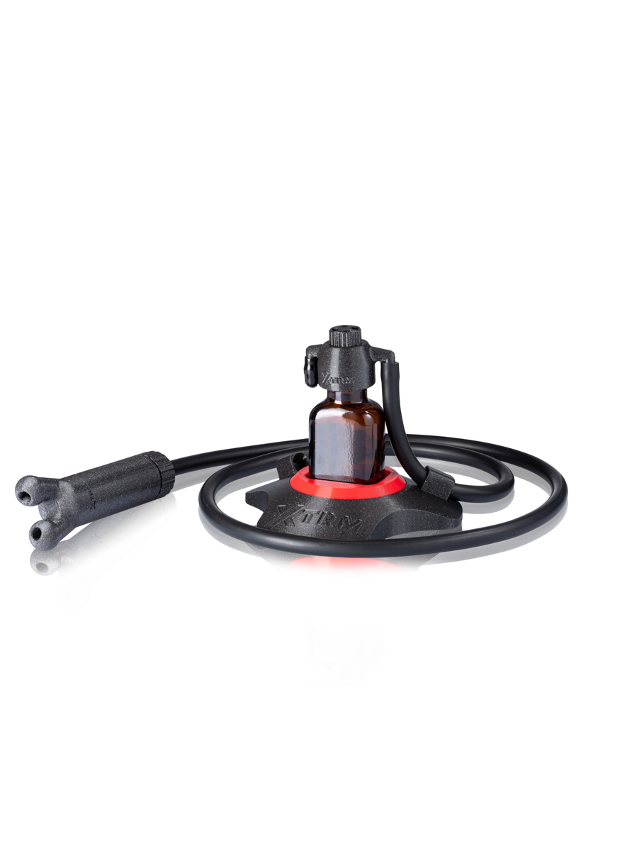Ecco come iniziare: aprire il coperchio della bottiglia di popper e posizionare la bottiglia nella Banger Station. Avvitare l’attacco della bottiglia sulla bottiglia e collegare il tubo flessibile in dotazione all’attacco. Infine, basta girare la rotella sull’accessorio e si è pronti a partire. Al termine della sessione, è necessario chiudere nuovamente la ruota. Se non si ha bisogno della Banger Station per più di 24 ore, si consiglia di estrarre la bottiglia di popper dalla stazione e di chiuderla con il coperchio del produttore.
