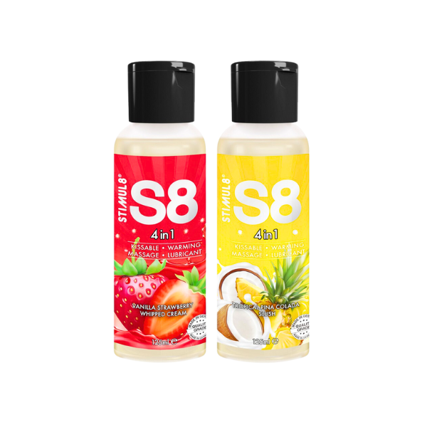 Il lubrificante S8 4-in-1 Dessert Lube 125ml Fragola Ananas di S8 è la scelta perfetta per preliminari sensuali e maliziosi. La formula di alta qualità è composta da ingredienti che rispettano il corpo. Questo significa che è anche baciabile e commestibile! Il lubrificante per dolci S8 4-in-1 può essere utilizzato in diversi modi: come lubrificante, come olio per massaggi, come bocconcino o come olio riscaldante. La formula ha proprietà riscaldanti, il che significa che quando la applichi sulle tue zone erogene, ti riscalda delicatamente con una calda eccitazione! Divertiti a giocare!