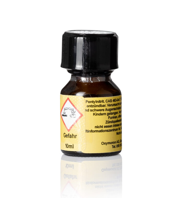 Pentylnitrit (CAS 463-04-7): Unsere Produkte beinhalten mehrheitlich dieses Nitrit, da Pentylnitrit als weniger gesundheitsschädlich eingestuft wird.