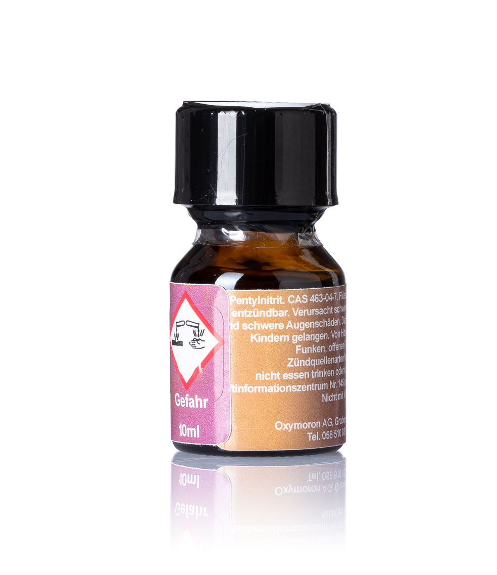 Pentylnitrit (CAS 463-04-7): Unsere Produkte beinhalten mehrheitlich dieses Nitrit, da Pentylnitrit als weniger gesundheitsschädlich eingestuft wird.
