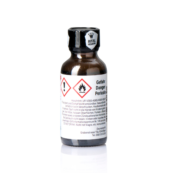 Hexylnitrit (UFI V300-A06S-K00V-G02P): Neues Nitrit vom Hersteller Lockerroom in Canada. Dieses Nitrit wird für einige der 30ml Flaschen vom Hersteller Lockerroom produziert. Gleich oder weniger gesundheitsschädlich wie Pentylnitrit. Deshalb bieten wir Produkte mit Hexylnitrit ebenfalls an.