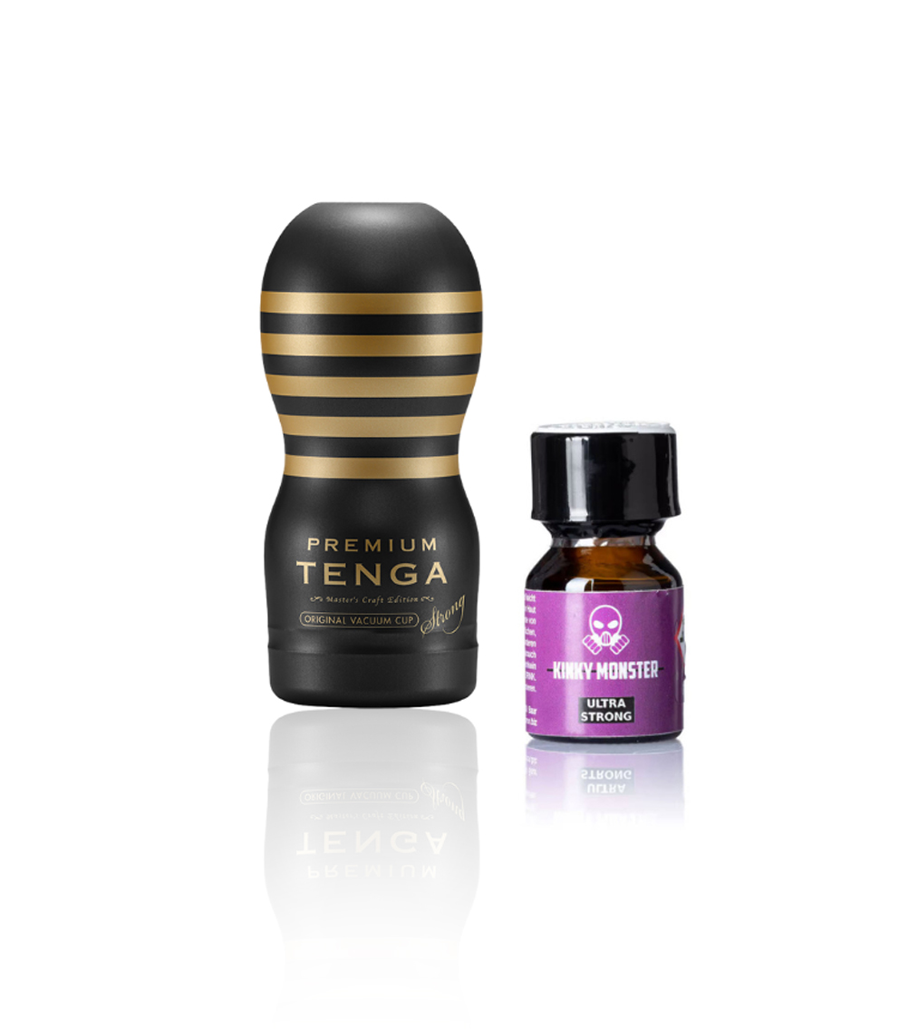 Kaufe jetzt Solo Sex Poppers Combo Tenga Premium Masturbator Vacuum Cup Strong zusammen mit Kinky Monster Poppers 10ml Ultra Strong und geniesse die Zeit alleine!