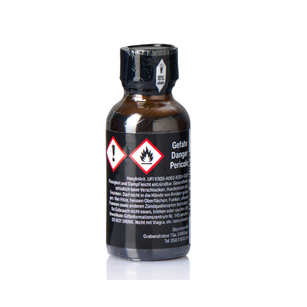 Hexylnitrit (UFI V300-A06S-K00V-G02P): Neues Nitrit vom Hersteller Lockerroom in Canada. Dieses Nitrit wird für einige der 30ml Flaschen vom Hersteller Lockerroom produziert. Gleich oder weniger gesundheitsschädlich wie Pentylnitrit. Deshalb bieten wir Produkte mit Hexylnitrit ebenfalls an.